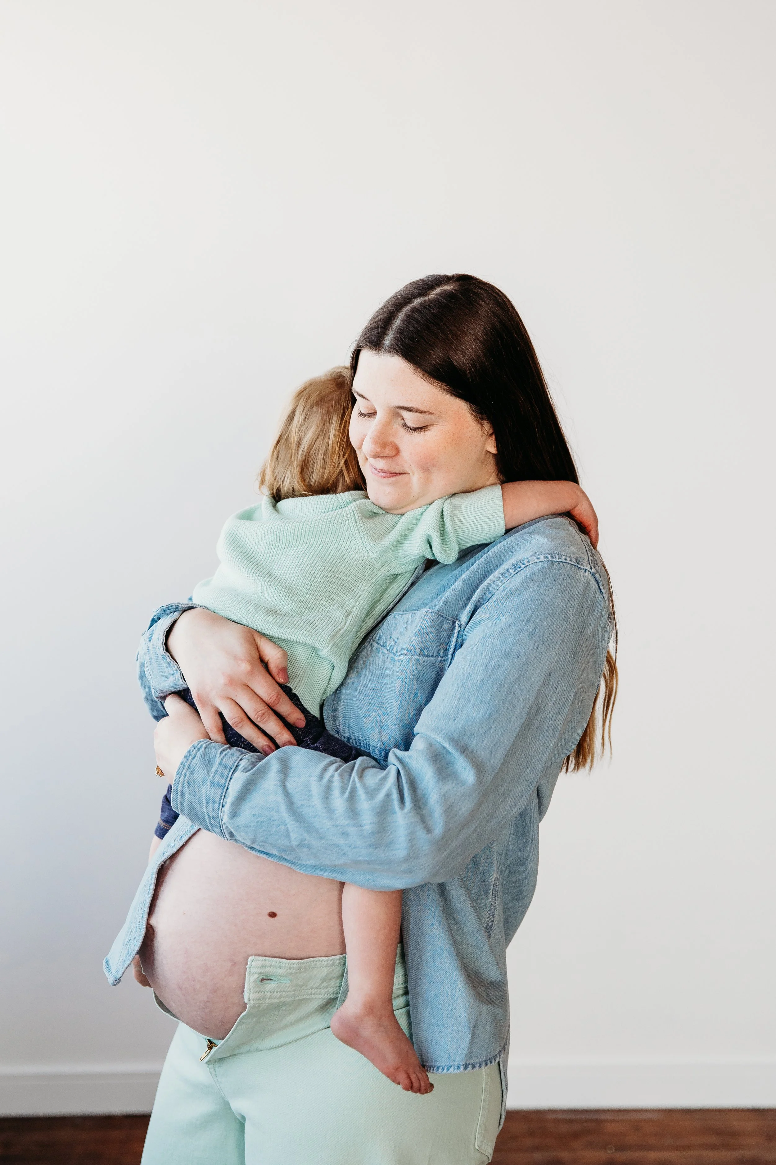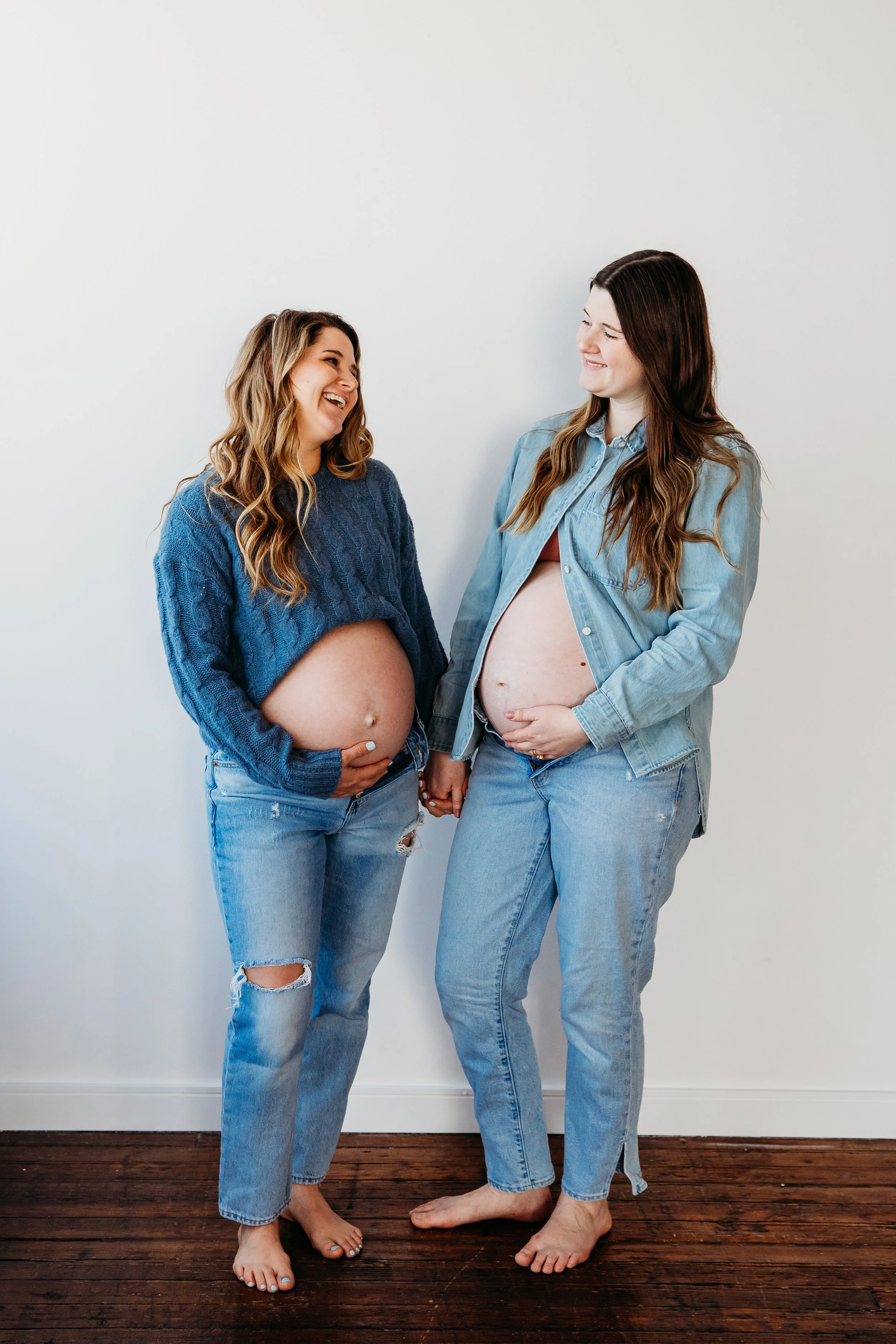 This was the first and only maternity session I’ve ever done of this kind and it was so cool. These sisters happened to both be pregnant at the same time with their second babies and their own mom gifted them a joint maternity session to document such a unique experience. These two mamas were absolute models and I loved their spring outfits. We had a blast in the studio in West Bottoms!